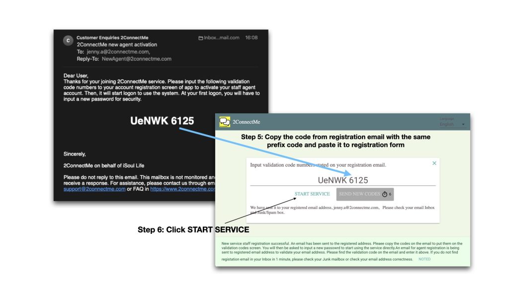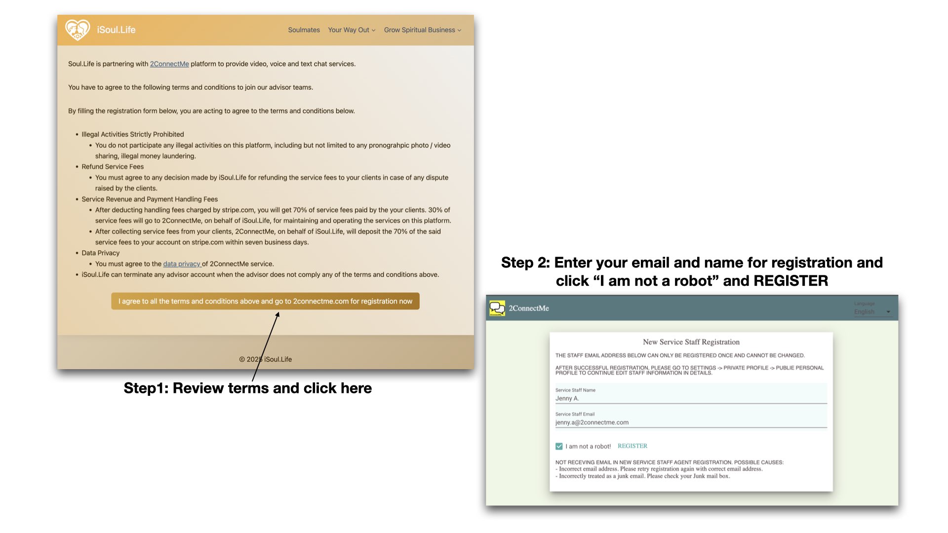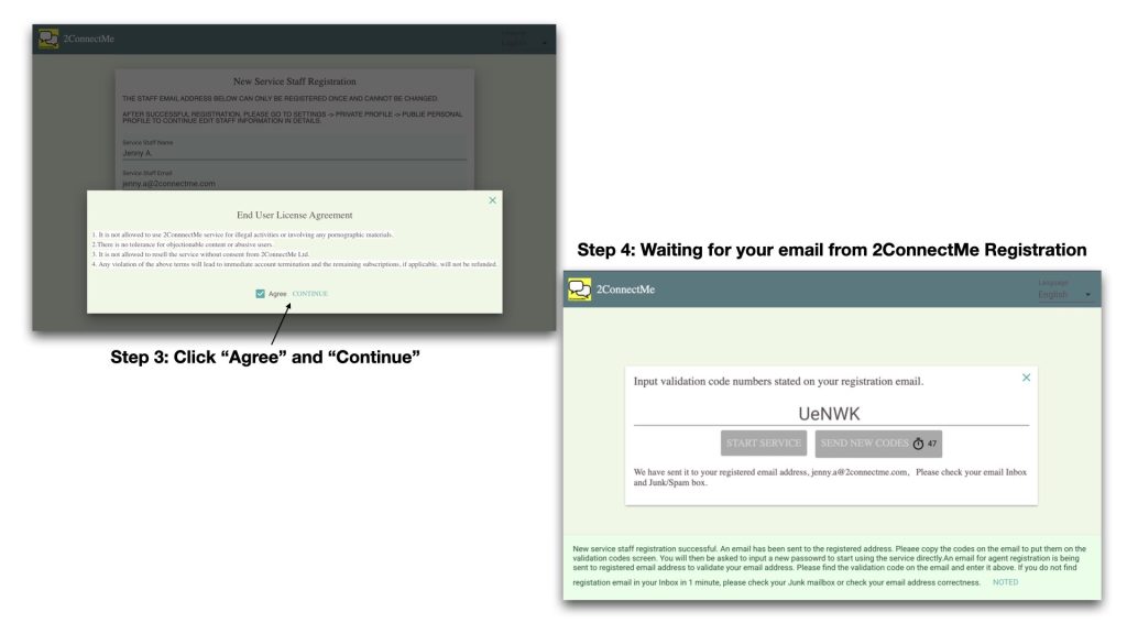 Stage B: Agree to the Terms and Conditions of 2ConnectMe and Waiting for incoming email telling validation code.