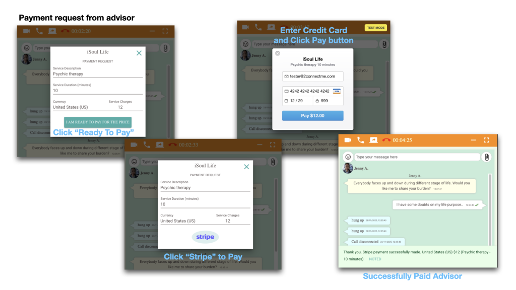 This is ad hoc invoice billing to client during live chat. Service staff advisor can issue an invoice to client either at the beginning or at the end of chat. It is highly recommended service fees should be paid by client before any consultation chat starts.