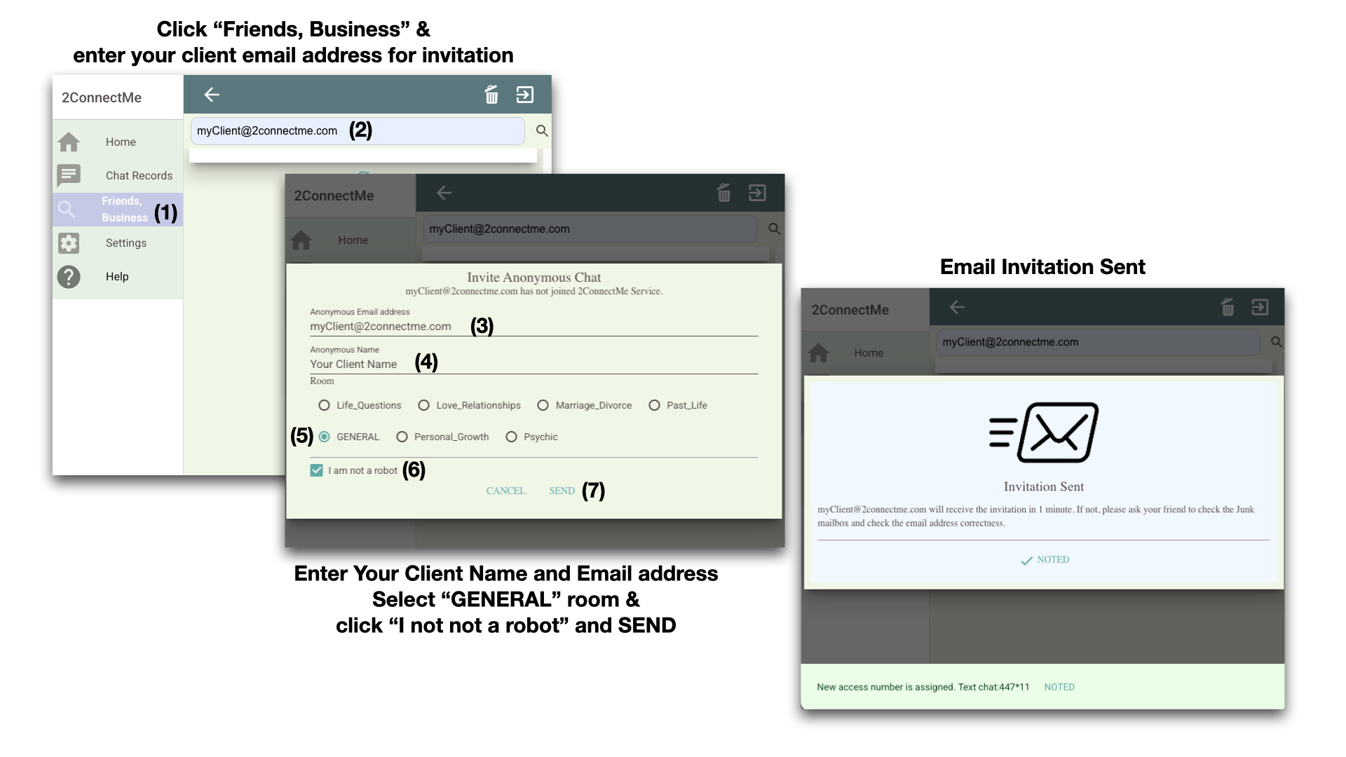 Besides the incoming chats from iSoul.Life, advisor can also initiate chat with client proactively through invitation email at Friends / Business menu.